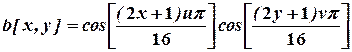 где DCT - матрица базисных (косинусных) коэффициентов для преобразования размером 8х8, имеющая вид: