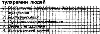 1, Организм человека восприимчив к туляремии. У человека туляремия — лихорадочное заболевание с относительно доброкачественным течением, не представляющее опасности заражения для окружающих. Летальность при туляремии в России ниже 0,5% (без лечения). Для диагностики туляремии у больного вполне достаточно применения 2 реакций, кожной пробы и реакции агглютинации. Другие иммунологические реакции технически более сложны (например, реакция связывания комплемента). Выделение от больного культуры возбудителя доступно лишь специально оснащенным лабораториям и применяется в ос- новном с исследовательскими целями. Для обнаружения туля-ремийных бактерий в органах животных и объектах внешней среды в лабораторной практике чаще всего используют бактериологические методы исследования материала. Грызунов, кровососущих членистоногих доставляют в лабораторию для исследования с соблюдением предосторожностей, предусмотренных правилами работы с особо опасными инфекциями. Бактериологический метод для диагностики заболевания у человека по сравнению с биологическим методом малоэффективен, так как в организме больного человека туляремийные микробы содержатся в скудном количестве. Для выращивания туляремийных бактерий используют специальные среды, так как на простых питательных средах (мясо-пептонном агаре, бульоне) этот микроб не растет, обычно применяется свернутая желточная среда, рыбно-глюкозо-цистиновый агар и агар с добавлением крови. При массивном обсеменении органов рост культуры туляремийных бактерий появляется через 18—24 ч в виде нежного синего налета на поверхности среды. 2. Бактериоскопия: ввиду очень мелких размеров туляремийного микроба он может быть с достоверностью обнаружен в мазках-отпечатках из патологического материала только при обильном обсеменении последнего. При изготовлении мазков-отпечатков используют окраску по Романовскому-Гимзе. Путем бактериоскопии (в сочетании с реакцией преципитации) может быть получен быстрый (через 2—3 ч) положительный ответ при исследовании доставленных грызунов. Однако он является лишь предварительным, так как положительные результаты бакте-риоскопического исследования должны быть подтверждены выделением культуры. 3. Серологические исследования: из серологических методов исследования применяют реакцию агглютинации по общепринятой методике с использованием туляремийного диагноста. Диагностическим считается титр 1: 100 и выше. Более чувствительной является реакция непрямой гемагглютинации, применяемая как для ранней, так и для ретроспективной диагностики. В качестве антигена используют туляремийный эритроцитарный диагностикум. Ускоренный метод серологической диагностики туляремии. Для этой цели применяют кровяно-капельную реакцию на стекле. В качестве антигена используют обычный туляремийный диаг- ностикум. В положительных случаях при наличии у больного титра сыворотки 1: 100 и выше агглютинация на стекле наступает немедленно после смешения крови с антигеном. Для ускоренной диагностики туляремии у людей может быть использована также микросерореакция. Для ее постановки на предметное стекло наносят не каплю крови, а каплю сыворотки крови обследуемого больного и к ней добавляют столько же антигена. Положительная микрореакция на стекле может служить для пр