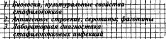 1. Стафилококки широко распространены в природе и являются возбудителями многих заболеваний человека и животных, весьма различных по своим проявлениям, от легких местных фолликулитов до стафилококкового сепсиса. Наиболее часто стафилококковые заболевания возникают у рожениц и новорожденных в родильных домах (сепсис, маститы, пиодермия и пневмония у новорожденных). Большинство заболеваний стафилококковой этиологии возникают в результате заражения патогенными стафилококками, устойчивыми к антибиотикам. Биология стафилококков, культуралъные свойства: для выращивания, избирательного выделения и дифференцирования стафилококков существует ряд сред. Корреляцию между биохимическими и культуральными свойствами стафилококков и их патогенностью можно установить при выращивании на среде, содержащей водный 1,5%-ный агар, хлористый натрий, магний, дрожжевой экстракт, желатин, двузамещенный фосфорнокислый калий. Биохимические свойства: стафилококки ферментируют лактозу и маннит, поэтому исследуемый материал засевают на плотные или жидкие среды (агар) с добавлением лактозы и маннита. Патогенные стафилококки при выращивании при 37 "С в течение 18 ч разлагают углеводы, и индикатор изменяет цвет среды. Однако значительное число штаммов непатогенных стафилококков (от 11 до 55%) также способно ферментировать маннит, что не позволяет признать эту пробу достаточным критерием патогенности. Кроме того, в связи с выделением штаммов стафилококков, резистентных к действию антибиотиков, их способность ферментировать маннит значительно изменилась. Существует ряд других методик идентификации и дифференци рования стафилококков. Нахождение фосфатазы в культурах на чашках с питательной средой рекомендовано для исключения невирулентных штаммов, в частности культур, выделяемых из носа от возможных носителей патогенных стафилококков. Для этой цели применяют агаровую среду, включающую фенол-фталеиндифосфат. Микробы, продуцирующие фосфатазу, освобождают свободный фенолфталеин, который затем обнаруживается при помещении чашки с культурой в пары аммония. Образование токсинов. Связь гемолитической способности стафилококка с его патогенностью позволяет считать гемолиз достаточным критерием патогенности. Для практических целей имеет значение определение гемолитической функции стафилококковых L- и В-токсинов. При посеве патогенных штаммов стафилококков, выделяющих А-гемолизин при выращивании при 37 "С на чашках с агаром, содержащих эритроциты барана, вокруг колоний обнаруживают значительные зоны гемолиза, В-гемолизин лизирует эритроциты барана, но при условии, что после выращивания при 37 "С посевы будут помещены на 24 ч на холод. В связи с указанным свойством В-гемолизин получил название тепло-холодового гемолизина. 2. Патогенные и непатогенные стафилококки могут быть также дифференцированы с помощью реакции адсорбции. С помощью адсорбированных сывороток пиогенные стафилококки были разделены на 7 специфических типов и 8 типов с менее специфическими реакциями. Большое значение имеет метод фаго-типажа стафилококков. С помощью специфических стафилококковых фагов стафилококки отнесены к различным фаготипам. Метод фаготипирования позволяет выявить патогенность штаммов стафилококка. Для фагодиагностики стафилококков с помощью специф