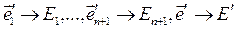 Относительно двух эквивалентных координатных систем любой луч m связки О, а значит и любам точка М проективного пространства RPn, имеет одни и те же наборы координат. Опр. 2. Класс эквивалентных между собой аффинных координатных систем в связке О пространства An+1 называется системой проективных координат в связке О. Опр. 3. Наборами координат любого луча m и любой гиперплоскости а в связке О относительно данной системы проективных координат называются наборы координат этого луча и этой гиперплоскости относительно любой аффинной системы координат в связке О. Переименовав связку О в проективное пространство RPn, получаем, что каждая проективная координатная система в проективном пространстве RPn задается n+2 точками, из которых никакие n+1 не лежат в одной гиперплоскости: (n+1)-ой вершиной Е1, Е2,..., Еn+1 координатного многогранника и единичной точкой Е. Эти n+2 точек называются фундаментальными точками данной координатной системы. В арифметическом n-мерном проективном пространстве имеется «привилегированная» или «однородная» система координат, определенная точками Е1(1;0;...;0), Е2(0;1;...;0),..., Еn+1(0;0;...;1), Е(1;1;...;1). В этой «однородной» системе координат наборами координат любой точки из RPn служат те числовые наборы, классом которых и является данная точка M(х1,х2,..., хn+1). Наряду с «однородной» системой координат в пространстве RPn может быть задана и другая «новая» система координат {E'1 Е'2,..., E'n+1}, Е наборами координат своих фундаментальных точек: E'k(c1k; c2k;...; cn+1,k), где Всегда можно сделать так, что эти n+2 наборы (1) окажутся согласованными между собой в смысле векторного равенства: