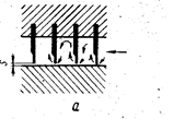 Рис. 20. Лабиринтные уплотнения. уплотнение. Качество смазки в подшипниках поддерживается в строгих границах, так как несущая способность опор рассчитана на определённую вязкость масла. Между ступенями турбокомпрессора, а также в местах выхода вала из корпуса устанавливают лабиринтные уплотнения – гладкие (рис. 20, а) или ступенчатые (рис. 20, б), создающие при движении газа через щели значительные гидравлические сопротивления. Размер щели s стремятся выполнить по возможности небольшим (в пределах 0,15 – 0,30 мм). В случае вредных или взрывоопасных газов центробежный компрессор имеет специальную систему масляного уплотнения вала. Схема такой системы приведена на рис. 21. Винтовой насос 1 подаёт масло в подшипник компрессора 4. Заполняя зазор между валом и вкладышем, масло герметизирует выход вала из корпуса компрессора, после чего сливаются по обе стороны подшипника. При этом в сторону рабочего колеса сливается меньшая часть, так как с этой стороны в корпусе компрессора имеется противодавление газа. Чтобы преодолеть последнее, необходимо поддерживать давление масла несколько большим, чем давление газа в корпусе компрессора. Такое превышение давления поддерживается регулятором 8.