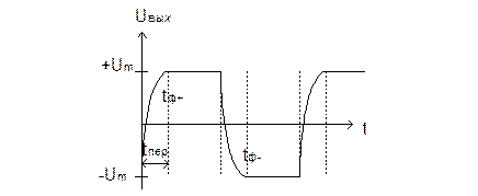 Временная диаграмма МВ с учетом переходных процессов переключения самого ОУ. Переключение реального ОУ происходит не мгновенно, а в течение какого - то времени t = tпер, которое определяется конечным быстродействием самого ОУ. tпер @ 2Um/Vu Vu – скорость переключения [В/мксек] tпер ~ 1¸100 мкс