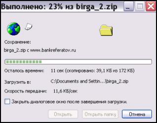Рисунок 6 К примеру, если рекламное агентство работает с клиентом по сети, то так оно может скачать любую информацию о фирме клиента (если таковая была там размещена) и создать на базе неё рекламный блок. Также по сети можно переслать на заверку макеты созданные рекламным агентством. После окончания загрузки окно загрузки закрывается автоматически, если установлен флажок Закрыть диалоговое окно после завершения загрузки. В противном случае после окончания загрузки активизируются кнопки Открыть и Открыть папку, которые позволяют, соответственно, открыть только что загруженный файл или папку, которая его содержит.