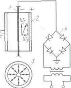 Рис. 33. Схема расположения электродов в электрофильтре: 1 – коронирующий электрод; 2 – осадительный электрод; 3 – силовые линии электрического поля в электрофильтре; 4 – выпрямитель.