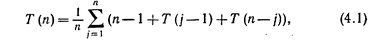 Рис. 15: Дерево двоичного поиска до (а) и после (б) выполнения операции УДАЛИТЬ (узел 25). В качестве упражнения предлагаем написать программу на C++ для операции УДАЛИТЬ. Заметим, что одно выполнение любой из операций ПРИНАДЛЕЖАТЬ, ВСТАВИТЬ, УДАЛИТЬ и MIN можно осуществить за время О (п), Подсчитаем временнýю сложность последовательности из п операций ВСТАВИТЬ, когда рассматриваемое множество представлено деревом двоичного поиска. Время, требуемое, чтобы в дерево двоичного поиска вставить элемент a, ограничено по порядку числом сравнений, производимых между а и элементами, уже находящимися в дереве. Поэтому время можно измерять числом производимых сравнений. В худшем случае добавление к дереву п элементов может потребовать квадратичного времени. Например, допустим, что последовательность элементов, которые надлежит добавить, оказалась упорядоченной (в порядке возрастания). Тогда дерево поиска будет просто цепью правых сыновей. Но если вставляется п случайных элементов, то, как показывает следующая теорема, вставка потребует время 0 (п log п). Теорема 11. Среднее число сравнений, необходимых для вставка п случайных элементов в дерево двоичного поиска, пустое вначале, равно O(n log n) для n³ 1. Доказательство. Пусть Т (п) – число сравнений, производимых между элементами последовательности a 1, a 2,¼, a n при построении дерева двоичного поиска, T (0)= 0. Пусть b 1, b 2,¼, b n – та же последовательность в порядке возрастания. Если a 1, a 2,¼, a n – случайная последовательность элементов, то a 1 с равной вероятностью совпадает с b j для любого j, 1 £ j £ n. Элемент a i становится корнем дерева двоичного поиска, и в окончательном дереве j–1 элементов b 1, b 2,¼, b j-1 будут находиться в левом поддереве корня и п–j элементов b j+1, b j+2,¼, b n – в правом поддереве. Подсчитаем среднее число сравнений, необходимых для вставки элементов b 1, b 2,¼, b j-1 в дерево. Каждый из этих элементов когда-нибудь сравнивается с корнем, и это дает j–1 сравнений с корнем. Затем по индукции получаем, что еще потребуется Т (j–1) сравнений, чтобы вставить b 1, b 2,¼, b j-1 в левое поддерево. Итак, необходимо j–1 + T (j–1) сравнений, чтобы вставить b 1, b 2,¼, b j-1 в дерево двоичного поиска. Аналогично п–j+Т (п–j) сравнений потребуется, чтобы вставить в дерево элементы b j+1, b j+2,¼, b n. Поскольку j с равной вероятностью принимает любое значение от 1 до n, то