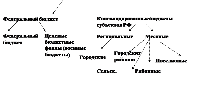 Бюджетная система Р.Ф. в 1991 г была значительно изменена. До этого года государственный бюджет включался в бюджет СССР, в котором отражались все бюджетно-существующие на территории страны, в том числе поселковые и сельские. Бюджетная система Р.Ф. сегодня состоит: I. Государственный бюджет РФ II. Региональные бюджеты РФ, в том числе: · 21 республиканский бюджет · 55 краевых и областных бюджетов · городские бюджеты Москвы и Санкт-Петербурга · 9 бюджеты автономных округов · бюджет европейской национальной области III. Местные бюджеты РФ (13 тыс.).