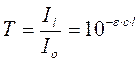 Величина Т характеризует способность раствора пропускать свет. Величина Т, отнесенная к толщине слоя 1 см, называется коэффициентом пропускания. Оптическая плотность (А) и пропускание (Т) связаны уравнением: