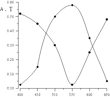 Величины А и Т зависят от длины волны (λ) и концентрации вещества в растворе. Зависимость А и Т от λ