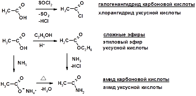 Углерод карбоксильной группы малоактивен по отношению к нуклеофилам (по сравнению с карбонильной группой) из-за + М гидроксила, для активации карбоновых кислот применяют протонирование, вносящее положительный заряд