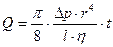 Для жидких, полужидких и газообразных веществ вводится понятие вязкости. Вязкость – свойство газов или жидкостей оказывать сопротивление перемещению одной части относительно другой. Она численно характеризуется коэффициентами Значение вязкости входит в законы гидродинамики вязких сред, а именно в закон Пуазейля (открыт в 1840 году), который описывает процесс истечения вязкой жидкости через тонкие капиллярные трубки, и в закон Стокса (открыт в 1851 году) – закон, определяющий скорость перемещения твердого шарика в неограниченной вязкой среде при действии на него небольшой постоянной силы. Согласно закону Пуазейля количество жидкости Q, [м3], обладающей динамической вязкостью h и протекающей под действием небольшой разности давлений на концах трубы Dp за время t сквозь капилляр длиной l и радиусом r (при l>>r), определяется формулой: