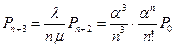 Таблица 3. Вероятности состояний многоканальной системы массового обслуживания, с ожиданием в очереди при ограничении длины очереди после возникновения очереди