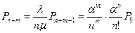 Таблица 2. Вероятности состояний многоканальной системы массового обслуживания, с ожиданием в очереди при ограничении длины очереди до возникновение очереди