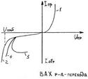 Рисунок 12 – ВАХ p-n перехода 1 – прямая ветвь; 2 – обратная ветвь при лавинном пробое; 3 – обратная ветвь при тепловом пробое; 4 – обратная ветвь при туннельном пробое.