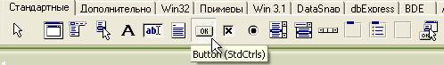 Стандартная кнопка, или просто кнопка, представлена в Delphi компонентом Button, который является оконным элементом управления, расположенным на странице библиотеки Standard (Стандартные).