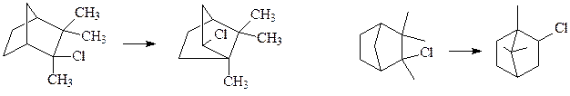 1) Нуклеофільне заміщення з перегрупуванням. Реакція Меєрвейна – перетворення гідрохлориду камфену в ізоборнілхлорид: