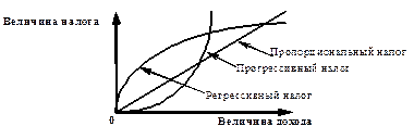 Налоги по их использованию подразделяются на общие и специальные (целевые). Общие налоги поступают в бюджет государства для финансирования общегосударственных мероприятий. Специальные налоги имеют строго определённое назначение. В зависимости от того, в распоряжение какого органа власти поступают налоги, различают федеральные налоги, налоги субъекта федерации и местные налоги. Налоги могут быть прогрессивными, пропорциональными и регрессивными (рис. 13-2). Такое деление базируется на соотношении между налоговой ставкой и доходом (или другим объектом налогообложения): прогрессивный налог – налог, ставка которого возрастает по мере увеличения объекта налогообложения; регрессивный налог – налог, ставка которого понижается по мере увеличения объекта налогообложения; пропорциональный налог – налог, ставка которого остается неизменной, независимой от размера объекта налогообложения. При прогрессивном налогообложении бремя налогов в большей степени ложится на богатых, при регрессивном и пропорциональном - тяжелее ударяет по бедным. Именно поэтому многие экономисты выступают против введённой в России единой ставки налога на доходы с физических лиц. Совокупность взимаемых государством налогов, платежей, а также формы и методы их построения образуют налоговую систему. Как правило, она строится по формуле: ядро плюс специальные и целевые налоги. Ядро представляет собой несколько наиболее крупных налогов на те объекты, которые выражают конечные финансовые результаты производственно-хозяйственной деятельности. Оно обеспечивает основную массу денежных доходов государства. Специальные налоги учитывают наличие разнообразных второстепенных доходных объектов, они дополняют функциональные возможности ядра налоговой системы.