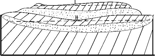 Рис. 30. Артезианский бассейн при обращенном рельефе.