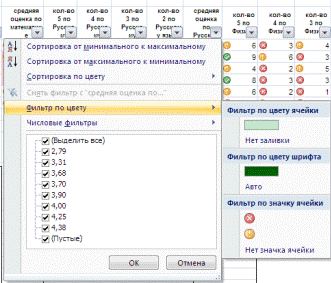 Это два наиболее важных типа базового анализа данных. Новые возможности сортировки и фильтрации, такие как выбор нескольких значений в автофильтрах, сортировка или фильтрация по цвету, а также «быстрые фильтры» для отдельных типов данных, делают Office Excel 2007 идеальным средством работы с большими объемами сложных данных. В Office Excel 2007 можно сортировать данные по цветам и по большему, чем 3 (вплоть до 64), количеству уровней.