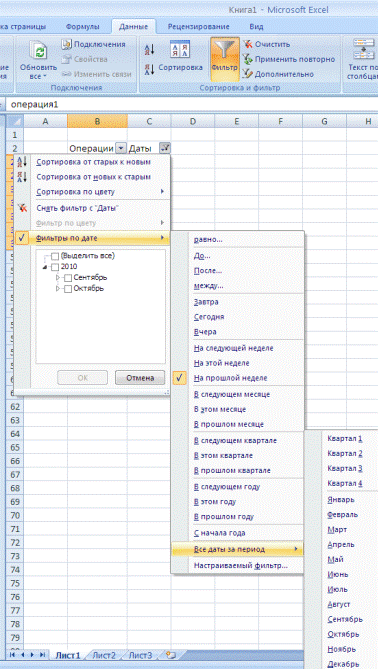 Много новых возможностей появилось в Excel 2007 для фильтрования данных по датам.