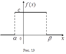 конечном интервале (α, β), а плотность вероятности постоянная на этом интервале (см. рис. 13), то говорят, что случайная величина ξ распределена равномерно (см.§9). Плотность распределения можно записать так .