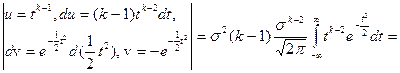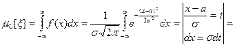а первое слагаемое обращается в нуль, т.к. подынтегральная функция нечетная. Итак, mξ= Очевидно, математическое ожидание, мода и медиана совпадают. Найдем центральные моменты
