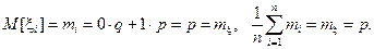 – среднее арифметическое n измерений. Теорему Чебышева в этом случае можно записать так: Следствие. Пусть случайная величина ξi означает число появлений события А в i-ом испытании Бернулли. Тогда она имеет следующий ряд распределения: