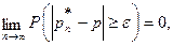 Определение. Последовательность случайных величин ξ1,ξ2,…,ξn,… называется сходящейся по вероятности к величине ξ0 при n→ ∞, если для любого e>0 имеет место равенство Теорема (Чебышев). Если все члены последовательности ξ1, ξ2,…, ξn,… имеют равномерно ограниченные дисперсии, т.е.