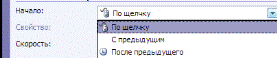 Можно так же задать вариант появления эффекта в раскрывающемся списке «Начало». При выборе варианта «После предыдущего» последующая анимация будет показана через заданное количество секунд после предыдущей. Для запуска анимации щелчком по тексту или объекту используется вариант «по щелчку». Вариант «С предыдущей» запускает анимацию нескольких объектов одновременно.