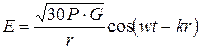 де Вираз (1.8) визначає кількісні залежності, але не відбиває хвильового характеру поширення електромагнітних хвиль. Хвильовий характер ПРХ можна відзначити, ввівши в (1.8) множник, що характеризує фазові співвідношення. Якщо збудження випромінювача провадиться гармонійними змінами, що збуджують е.р.с. за законом