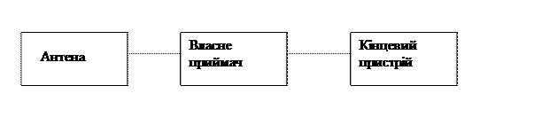 Радіоприймальний пристрій призначений для вловлювання й перетворення енергії радіохвиль із метою виділення з неї корисної інформації. Воно складається із трьох основних частин (рис.1): антени, власне приймача й кінцевого пристрою.