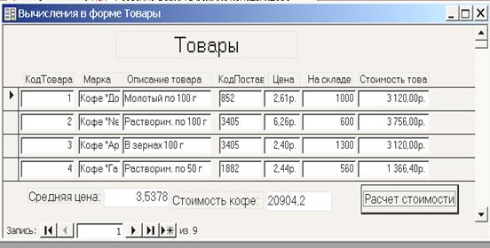 Me![“Стоимость_кофе”] +.Fields("Стоимость товара")