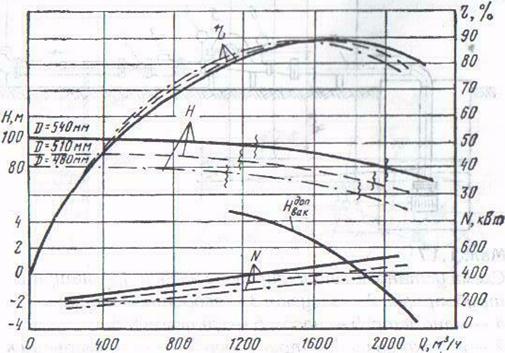 Рис. 4. 5. Характеристика відцентрового насоса марки Д 1600-90 при n = 1450 хв-1