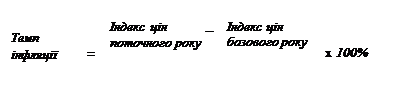 Отже, закон грошового обігу означає, що маса грошей, помножена на швидкість їх обертання, повинна дорівнювати обсягу випущених товарів помноженому на рівень цін. Якщо рівновага порушується, то за допомогою фінансово-економічних заходів необхідно один з показників підкорегувати: збільшити виробництво чи імпорт товарів, відрегулювати швидкість обертання грошей, скоротити грошову масу і підвищити рівень цін. Питання четверте. Інфляція, її суть і причини. Темпи інфляції. Види інфляції. Соціально-економічні наслідки інфляції. Інфляція – це знецінення грошей, спричинене диспропорціями в суспільному виробництві й порушенням законів грошового обігу, яке виявляється у стійкому зростанні цін на товари і послуги. Інфляція зумовлена комплексом внутрішніх і зовнішніх причин. До внутрішніх причин інфляції належать: - порушення пропорцій суспільного виробництва (між виробництвом і споживанням; між нагромадженням і споживанням; між попитом і пропозицією; між грошовою масою в обігу і сумою товарних цін); - значне зростання дефіциту державного бюджету і державного боргу, зумовлених непродуктивними державними витратами; - надмірна емісія паперових грошей, яка порушує закони грошового обігу; - мілітаризація економіки, що відволікає значну частину ресурсів в оборонну промисловість, призводить до недовиробництва товарів народного споживання, створює їх дефіцит; - збільшення податкового тягаря на товаровиробників; - випередження темпів зростання заробітної плати порівняно з темпами зростання продуктивності праці. Зовнішні причини інфляції пов’язані з посиленням інтернаціоналізації господарських зв’язків між державами, що супроводжується загостренням конкуренції на світових ринках капіталів, товарів та послуг, робочої сили, загостренням міжнародних валютно-кредитних відносин, зі структурними світовими кризами (енергетичною, продовольчою, фінансовою та ін.). Процес, зворотній інфляції – падіння цін і витрат, називають дефляцією. Інфляцію вимірюють за допомогою індексу цін (індекс споживчих цін, індекс оптових цін виробника, дефлятор ВНП). Найуніверсальнішим індексом є дефлятор ВНП (відношення номінального ВНП до реального), оскільки визначає не тільки споживчі, а й інші ціни. Індекс споживчих цін визначається за формулою: