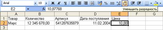 Изменение разрядности позволяет изменять количество знаков после запятой, отображаемое в ячейке.