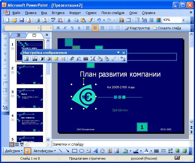 Для изменения размера рисунка выделите его щелчком мыши так, чтобы появились маркеры, и перетащите маркеры при нажатой левой кнопке мыши (рис. 36.15).