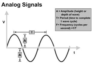 Аналоговий сигнал характеризується тим, що є неперервним у часі; відповідно, він має неперервний графік залежності напруги від часу.