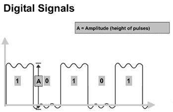 Говорять, що дискретний сигнал (дискретні імпульси) мають форму квадратної хвилі; вона характеризується практично миттєвим переходом від високого рівня напруги до низького і навпаки. У сучасних цифрових пристроях така форма сигналу досягається за рахунок накладання синусоїдальних сигналів кратних частот (так зване перетворення Фур’є).