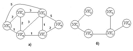 в множество N. Следовательно, в дереве кратчайших путей Аналогично заполняются другие строки табл. 6.1, и постепенно строится дерево кратчайших путей, окончательный вид которого представлен на рис. 6.1, б. По дереву путей легко получить примитивную матрицу маршрутов при связи от