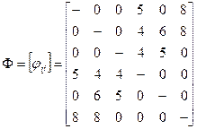 Разбиение графа Пример. Имеется шесть центров коммутации, взаимное расположение которых представлено на рис.9.3а. Требуется соединить эти центры каналами, чтобы получить сеть, удовлетворяющую следующей матрице тяготения: