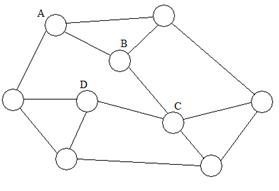 Решение обеспечивает существенную экономию в расходе каналов. Так, если по матрице Ф суммарный обмен составляет 40 условных единиц в секунду, то он реализуется сетью с суммарной пропускной способностью отдельных ветвей, лишь 20 условных единиц в секунду. 9.3 Методы улучшения структуры сети. Структура сети ПД должна удовлетворять критерию связности и допускать такое распределение потоков и пропускных способностей каналов, которое обеспечивает малую среднюю задержку, малую стоимость сети или ее высокую производительность. Поэтому решение по синтезу структуры сети, полученное по одному из этих критериев должно быть улучшено для обеспечения требований по другим критериям. Наиболее распространенными методами улучшения структуры сети являются метод перестановки ветвей и метод насыщения сечений. Если обеспечена заданная связность сети, но требуется улучшить другие характеристики, то, внося изменения в структуру сети, необходимо стремиться не изменять числа исходящих ветвей от каждого центра. В этом и состоит сущность метода перестановки ветвей. На рис.9.4 показан пример использования этого метода, в котором исходное соединение центров А-В, С-Д заменится на А-С, В-Д. Эти изменения являются примером локальных изменений в сети, которые способны повлиять на ее характеристики. Если произведенное локальное изменение улучшает работу сети, его сохраняют и дальнейшую перестановку ветвей производят на другом участке сети. Для пояснения метода насыщения предположим, что нагрузка в сети увеличилась до предела. При этом интенсивность потока сообщения (Fs) в минимальном сечении (S) не превышает его пропускной способности