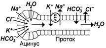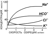Качественый состав слюны: 1. Вода – 99,5 % 2. Ферменты 1.2. α‑амилазу (птиалин), α‑глюкозидазу. мальтаза 2.2. протеазы мурамидаза (лизоцим), саливаин, гландулаин и др. 3.2. липазы 4.2. фосфатазы кислая и щелочная 5.2. РНКазы 3. Электролиты 1.3. катионы (Na+, K+, Ca++) 2.3. анионы (Cl-, HCO3-, H2PO4-, I-, 4. Органические соединения (мукополисахариды, гликопротеины, белки) Количественный состав смешанной слюны человека: Вода 994 г/л Белки 1,4—6,4 г/л Муцин 0,8—6,0 г/л Холестерин 0,02—0,50 г/л Глюкоза 0,1—0,3 г/л Аммоний 0,01—0,12 г/л Мочевая кислота 0,005—0,030 г/л Фосфаты 0,08—0,35 г/л Соли натрия 6—23 ммоль/л Соли калия 14—41 ммоль/л Соли кальция 1,2—2,7 ммоль/л Соли магния 0,1-0,5 ммоль/л Хлориды 5—31 ммоль/л Гидрокарбонаты 2—13 ммоль/л Мочевина 140—750 ммоль/л Состав, а, следовательно, и свойства слюны непостоянны и зависят от следующих факторов: 1. характера веществ, поступивших в ротовую полость (вида стимулятора слюновыделения). 2. характера слюнной железы и её вклада в общую секрецию 3. скорости секреции Как зависит состав слюны от характера веществ, поступивших в ротовую полость? Если в рот попадают камни, песок или кислота, аммиак (отвергаемые вещества), то выделяется много «отмывной» слюны, т.е. жидкой и бедной органическими веществами. При поступлении в рот пищи (хлеб, сухари, мясо и др.) выделяемая слюна более густая, богатая ферментами и муцином. Пищевые вещества вызывают отделение «пищевой» слюны, т.е. вязкой и богатой органическими веществами. На сухую пищу выделяется больше слюны, чем на более жидкую. В [НД18] зависимости от набора и интенсивности секреции разных гландулоцитов в железах они выделяют слюну разного состава. Околоушные и малые железы боковых поверхностей языка, содержащие большое количество серозных клеток, секретируют жидкую слюну с высокой концентрацией хлоридов натрия и калия и высокой активностью амилазы. Секрет поднижнечелюстной железы (смешанный) богат органическими веществами, в том числе муцином, содержит амилазу, но в меньшей концентрации, чем слюна околоушной железы. Слюна подъязычной железы (смешанная) еще более богата муцином, имеет выраженную щелочную реакцию, высокую фосфатазную активность. Секрет слизистых желез, расположенных в корне языка и неба, особенно вязок из-за высокой концентрации муцина. Здесь же есть и мелкие смешанные железы. Из ацинусов желез секрет поступает в систему все укрупняющихся протоков, собирающихся в выводной проток, выносящий несколько измененную здесь (количество и состав) слюну в полость рта.