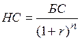 Де НС - справжня вартість грошового потоку; БС - майбутня вартість грошового потоку r - ставка відсотка норми прибутковості; n - число років.