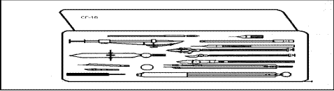 Для викреслювання топографічних планів і карт застосовують пензлі середніх розмірів № 7-12. При струшуванні змоченого водою пензля, волоски його не повинні розсипатися, а утворювати гострий кінець. Пензель повинен вбирати в себе багато вологи. Найкращими для роботи є пензлі виготовлені з натуральних волосків (колонка, тхора або білки). Вони достатньо пружні та еластичні, добре утримують воду та при правильному використуванні довго зберігають свої властивості. Креслярські пера використовуються для усіх видів креслярських робіт у топографії та картографії. Вони можуть бути тверді, (№ 41 та № 23) і м’які (№ 291). Перо вставляють в спеціальну ручку – перотримач. (СЛАЙД 12 лекала