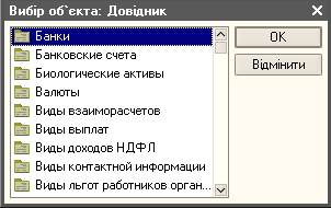 Після старту програми у верхній частині екрану відкривається головне меню програми. Перелік усіх довідників, які описують об’єкти обліку, вибирають у меню ОпераціїÞДовідники.