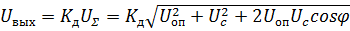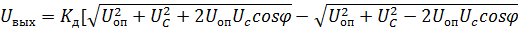 где U 𝛴 — амплитуда суммарного напряжения; U оп— амплитуда опорного напряжения; Uc — амплитуда сигнала; φ — угол сдвига фаз между сигналом и опорным напряжением, изменяющийся по закону модулирующего сигнала. Амплитудно-модулированное напряжение обычным образом детектируется амплитудным детектором. Детекторная характеристика будет описываться выражением
