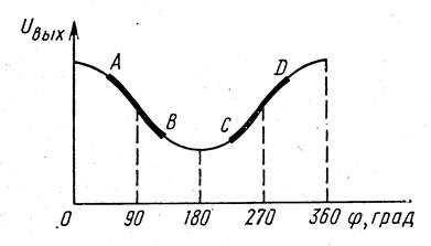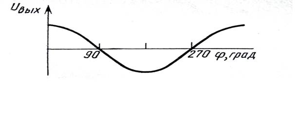 Характеристика проходит через 0 при φ=90° и φ=270° (рисунок 5.7). Полярность выходного напряжения зависит от знака отклонения фазы φ. Степень линейности характеристики зависит от соотношения амплитуд напряжений U оп и Uc. Наилучшая линейность получается при U оп= Uc. В этом случае