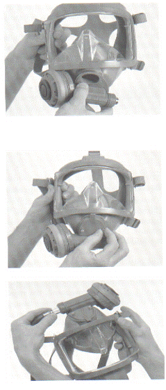 4.1.1. Приєднати дихальний клапан до маски товчком клапану в з’єднувальний пристрій і потім клапан повернути проти годинникової стрілки так щоб він увійшов в штокове з’єднання.
