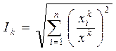 де Ik – індекс географічної концентрації експорту (імпорту) товару k; xik – обсяг експорту (імпорту) товару k країною i; xk – світовий експорт (імпорт) товару k (xk = n - кількість країн-експортерів (або імпортерів).