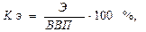 де Кэ – експортна квота; Э - річний обсяг експорту країни; ВВП - валовий внутрішній продукт країни за аналогічний період. Коефіцієнт експорту більше, ніж більше розвинена промисловість. Коефіцієнт експорту в більших країн менше, ніж у малих. Якщо коефіцієнт експорту більше 1, це може бути зв'язане зі значним реекспортом. Д) показники ефективності зовнішньої торгівлі, тобто різноманітні показники, як розраховуються шляхом зіставлення досягнутого економічного результату (ефекту) зовнішньої торгівлі з витратами ресурсів на отримання цього ефекту. Ефективність зовнішньої торгівлі є рівнем економії національної праці внаслідок участі країни у міжнародному поділі праці та зовнішньоторговельному обміні. При цьому важливо, щоб національні витрати на експорт були меншими за економію витрат у результаті імпорту; Е) показники динаміки зовнішньої торгівлі – будь-які з наведених вище показників, які аналізуються у динаміці протягом певного часу; Ж) показники зіставлення – будь–які з наведених вище показників, розраховані для двох або більше країн (регіонів, світу в цілому) з метою їх порівняння та виявлення особливостей розвитку зовнішньої торгівлі кожної з цих країн (регіонів).