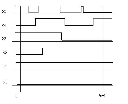 Для векторного процесса (переключения совокупности переменных) соответствующим понятием является вектор длин. Компоненты этого вектора - длины процессов, являющихся компонентами векторного процесса. Например, векторный процесс, компонентами которого являются шесть процессов на рис. 2, имеет вектор длин (5, 3,1,1,0,0). Векторный переключательный процесс считается простым переключением, если все его компоненты – простые переключения, совершаемые одновременно. В противном случае векторный процесс считается сложным. На рис.2 набор (вектор) X1 = х5 x4 x3 x2 x1 x0 = 101010 изменяется на набор (вектор) X2 = 010110.
